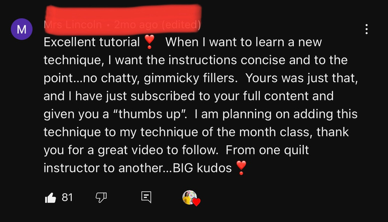 Investing in this quilting membership is not just about joining a community, it's about taking your quilting skills to the next level, having access to premium resources and personalized support from me and other members, and connecting with a group of people who share your passion.